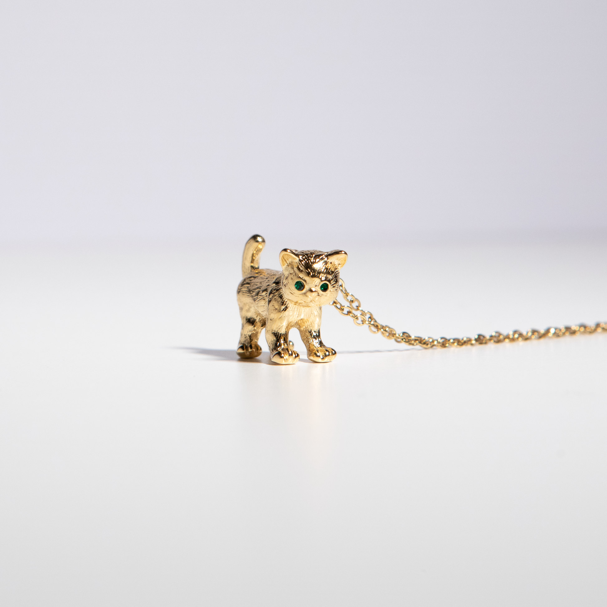 Fai brillare il tuo amore per gli animali con la nostra adorabile collana "Pedro". Realizzata in acciaio inossidabile, questa collana presenta un delizioso ciondolo a forma di gatto, impreziosito da due scintillanti brillantini verdi negli occhi, che catturano l'attenzione e aggiungono un tocco di vivacità al tuo outfit.