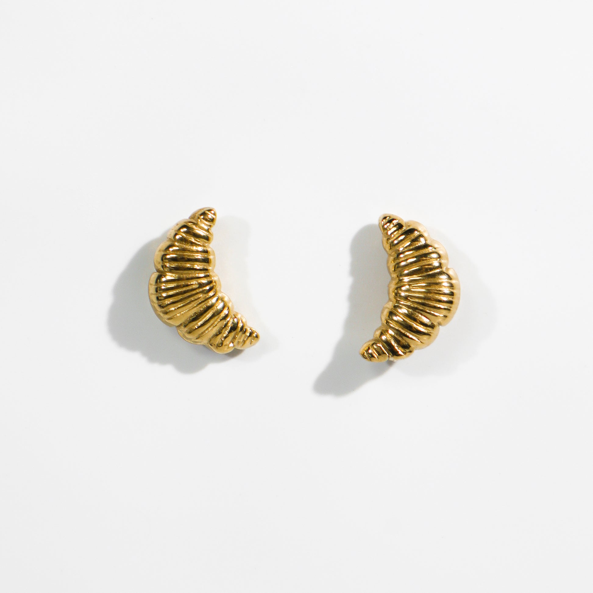 Ispirati alla forma iconica del celebre dolce francese, gli orecchini “Croissant” uniscono eleganza e ironia in un design unico. Realizzati in metallo dorato con finitura lucida, questi gioielli dal volume morbido e sinuoso catturano la luce con raffinatezza, donando un tocco di originalità e stile a qualsiasi look. Perfetti da indossare tutti i giorni o per aggiungere un dettaglio giocoso a un outfit più sofisticato. Un omaggio goloso alla creatività del design contemporaneo.