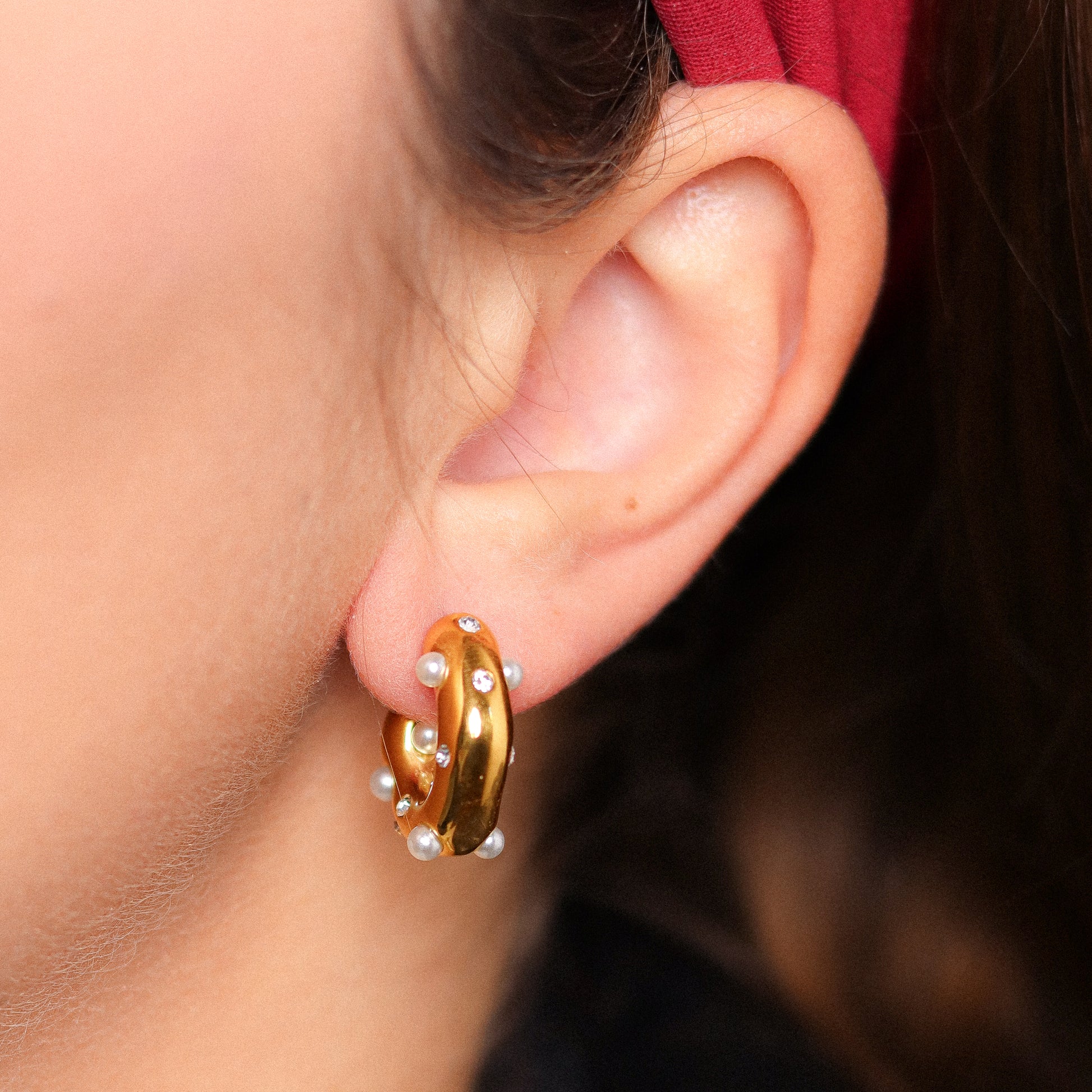 Gli orecchini "Gigi" sono la perfetta combinazione di eleganza e glamour. Il design a cerchio arricchito da perle delicate e cristalli scintillanti dona un tocco di raffinatezza a ogni outfit. Ideali per occasioni speciali o per aggiungere un pizzico di lusso al tuo look quotidiano, questi orecchini non passeranno inosservati.