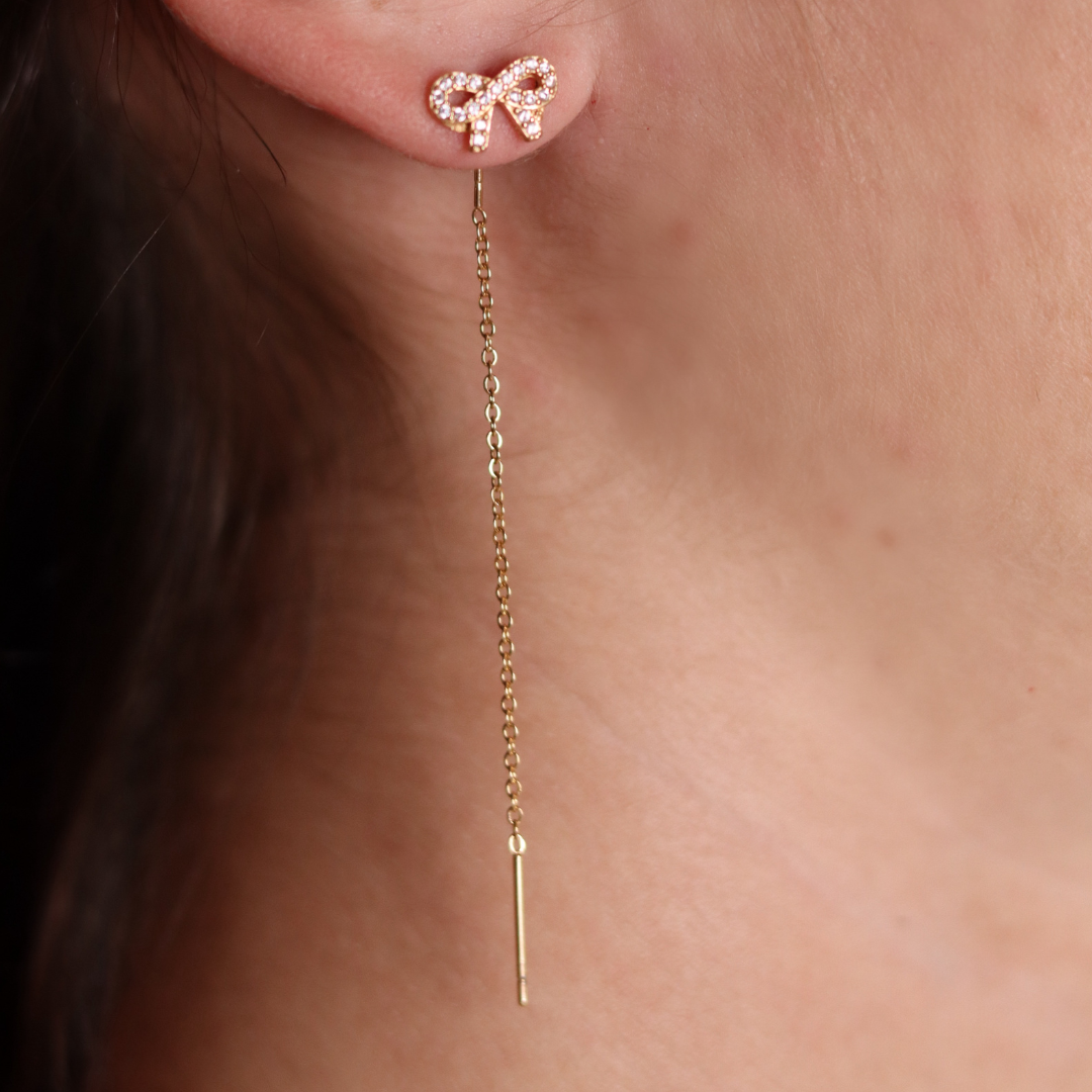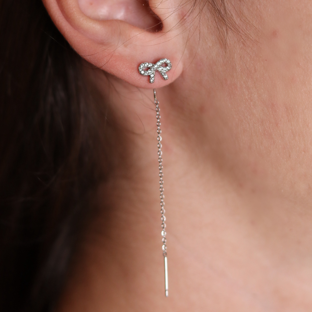 Aggiungi un tocco di dolcezza al tuo stile con i nostri orecchini "Mia". Con il loro affascinante design a forma di fiocco, impreziosito da scintillanti brillantini, questi orecchini sono l'accessorio perfetto per esprimere la tua femminilità e il tuo senso della moda.
